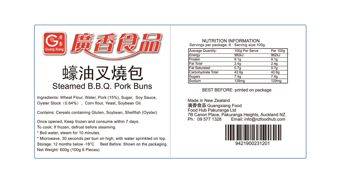 广香蚝油叉烧包 6个 Steamed GUANGXIANG B.B.Q Pork Bun 6 pcs